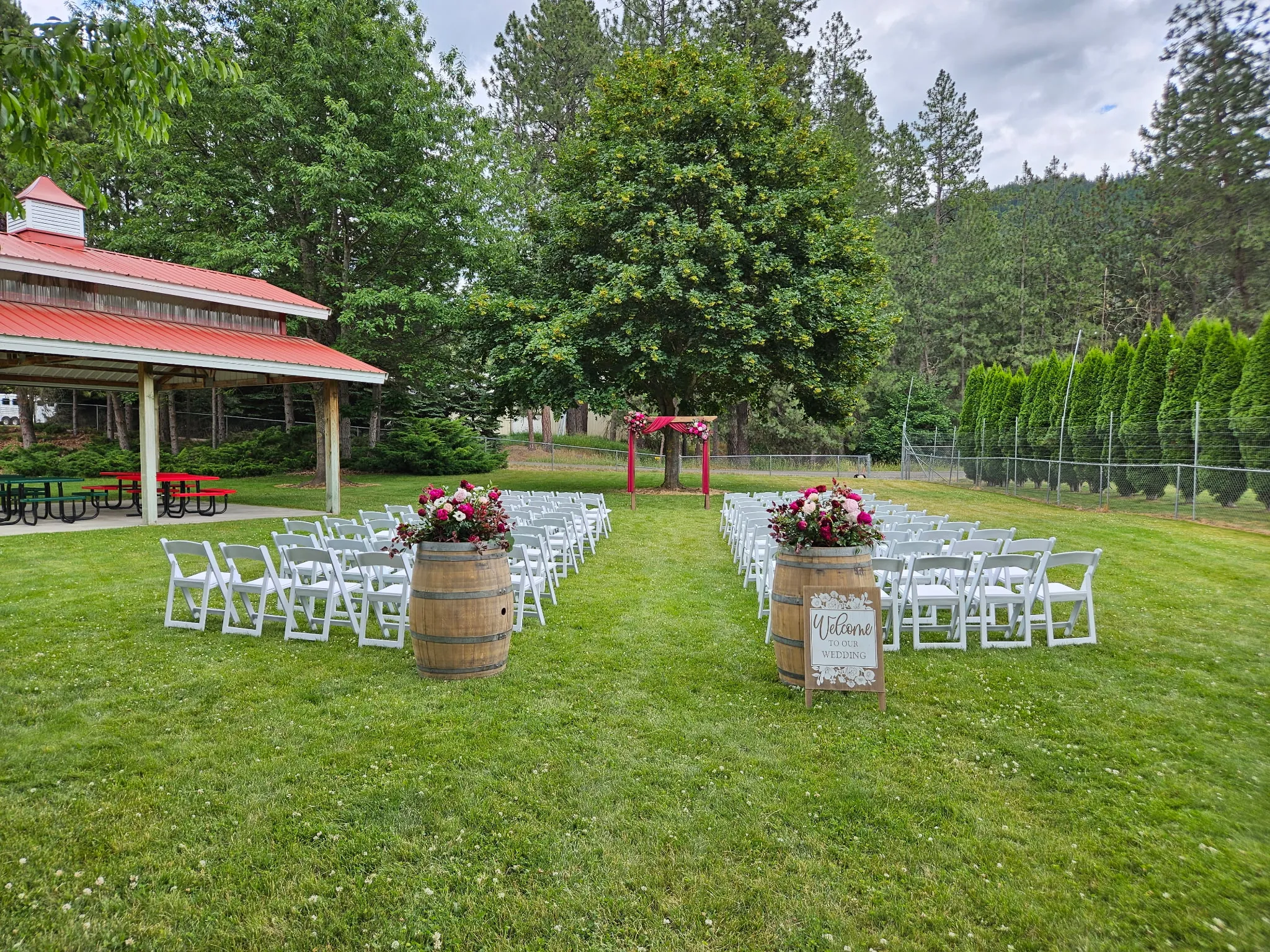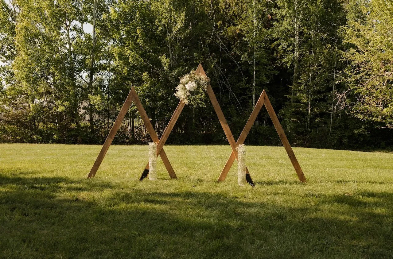 Thersea BriggsWe couldn’t be happier with our arbor rental and wood stumps from Ridgeline Event Rentals! Communication and delivery were seamless, and the triple-peak arbor was a stunning addition to the lakefront scenery. The custom-cut wood stumps were such a nice touch along the aisles next to the chairs.